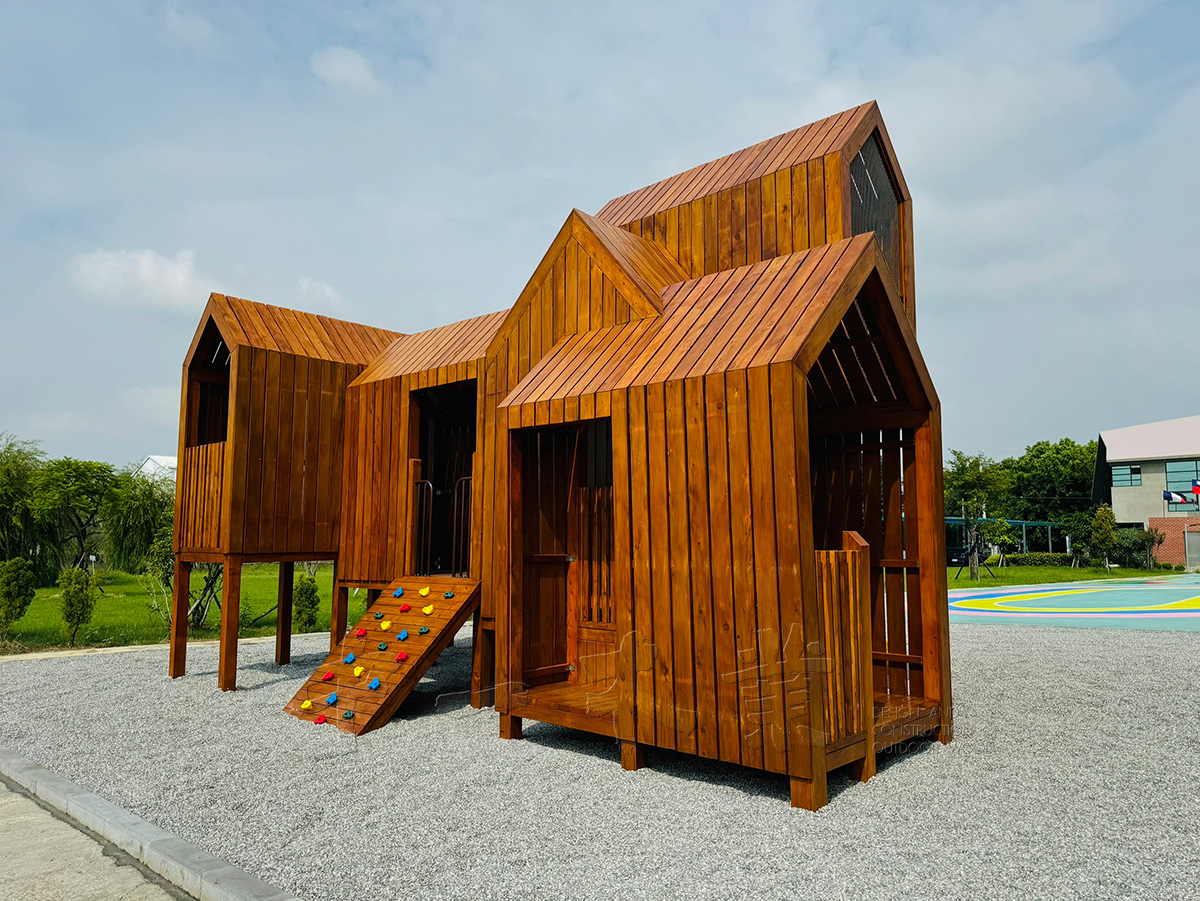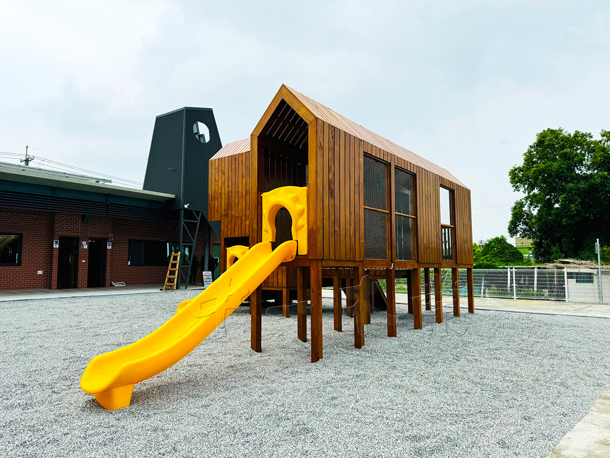 看著這座宛如森林小屋的設施,彷彿能聽見孩子們未來的歡笑聲。我們堅持用匠心工藝,為下一代築起最快樂的成長空間。